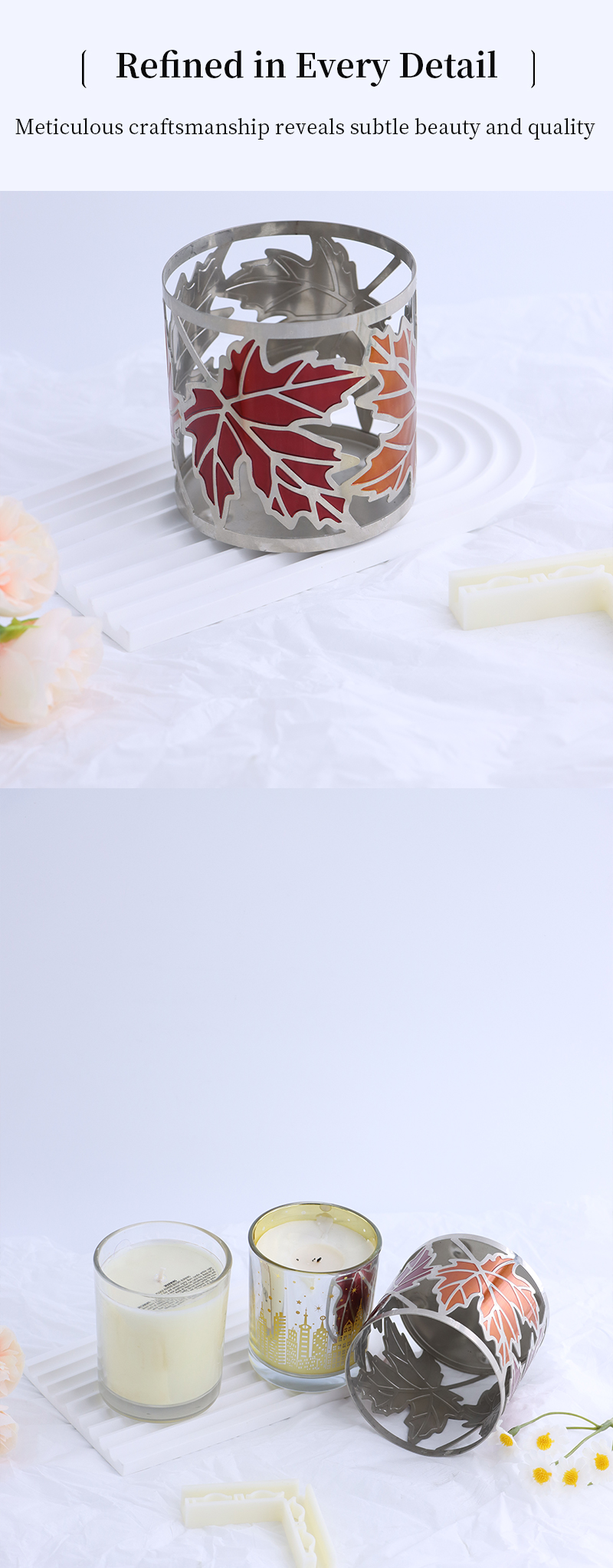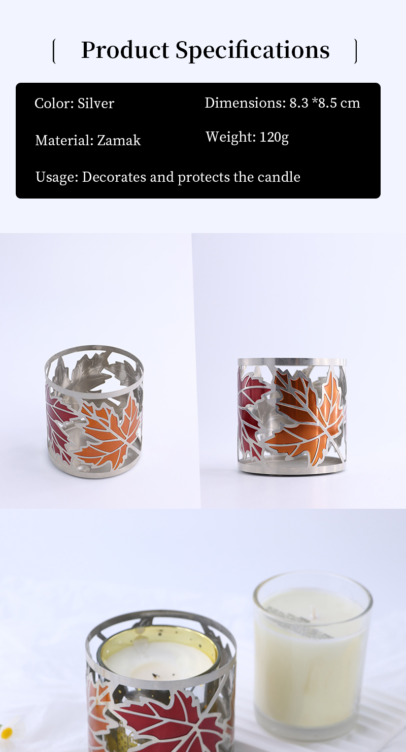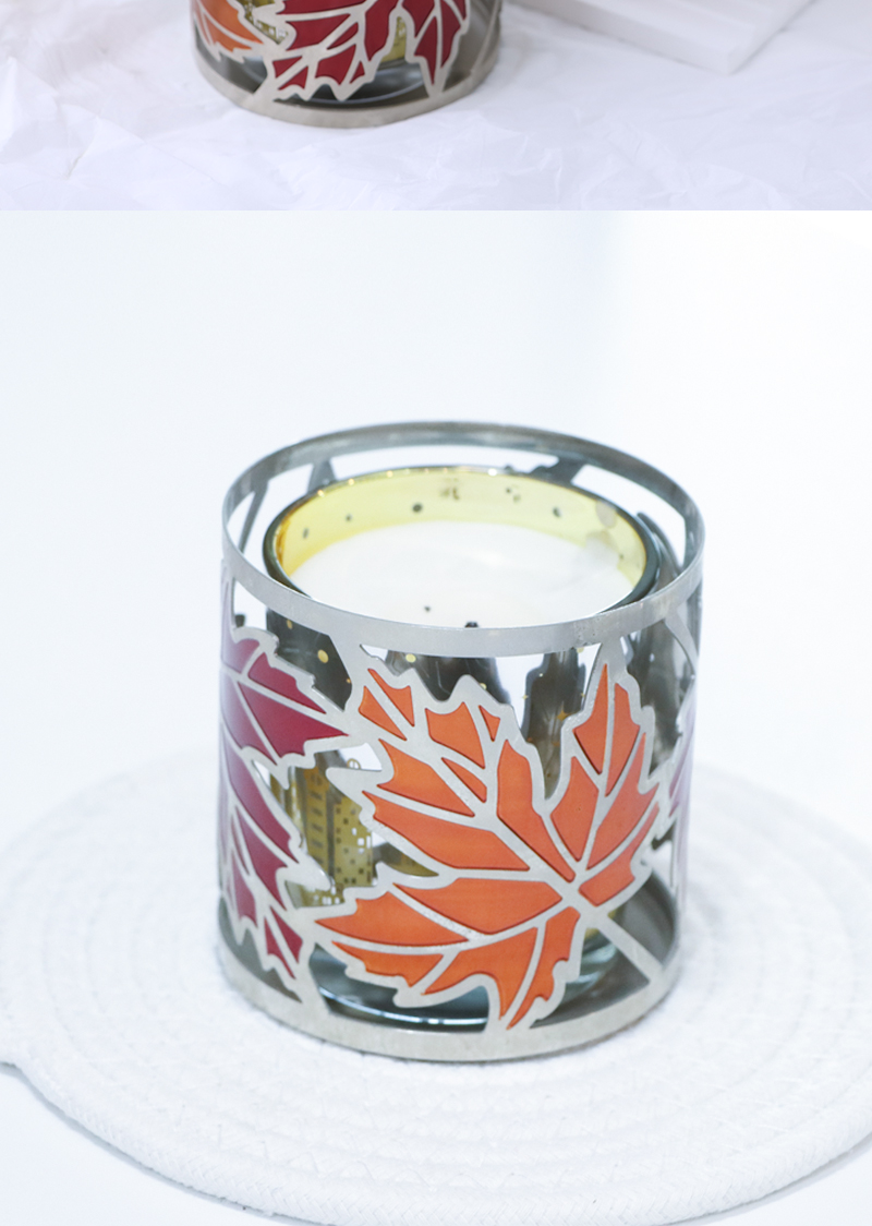 Colorful Maple Leaf Metal Candle Holder with Cutouts