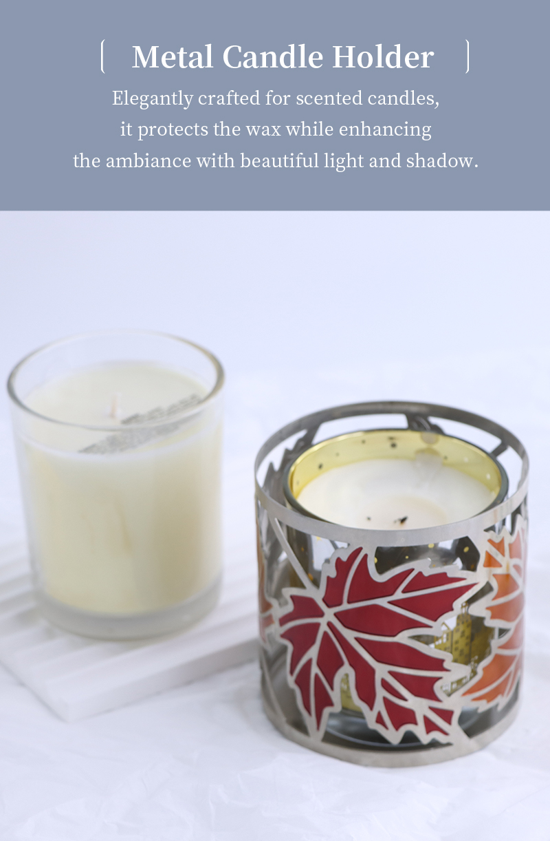 Colorful Maple Leaf Metal Candle Holder with Cutouts